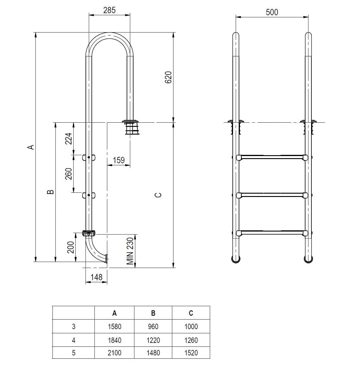 Drabinka do basenu Lina 3 stopniowa min. głębokość 100 cm stal 304