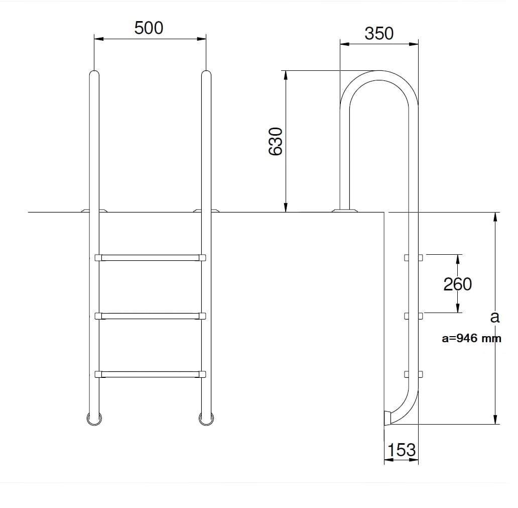 drabinka do basenu 2 stopniowa min. głębokość basenu 80 cm
