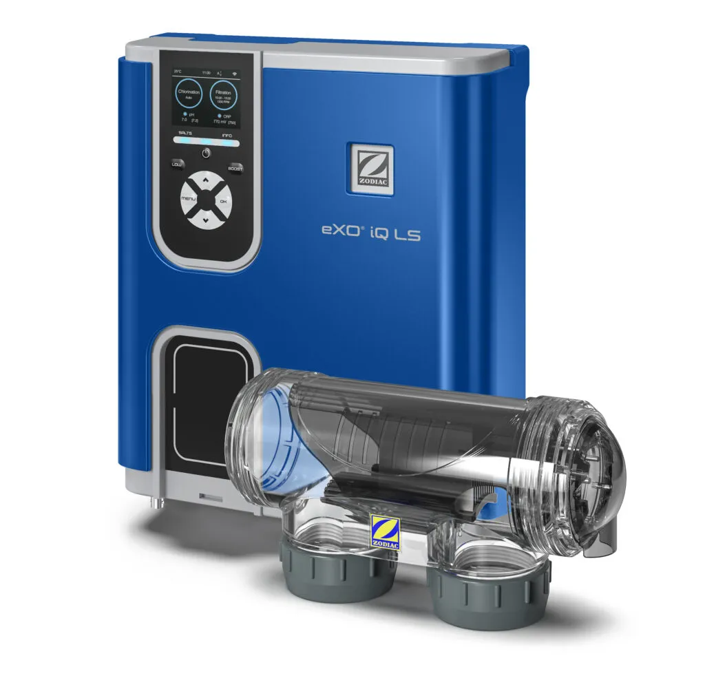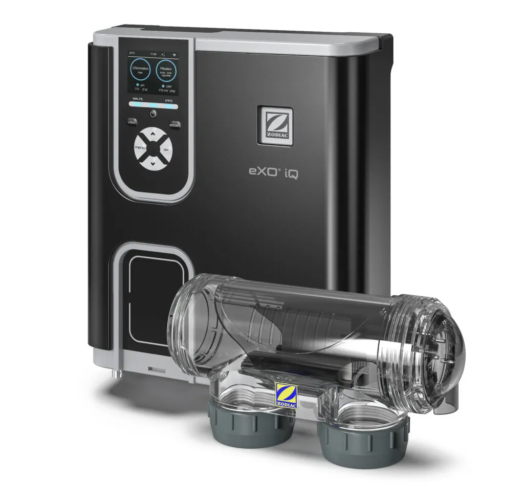 Elektrolizery soli do basenu eXO iQ i eXO iQ LS to urządzenia typu „plug & play”, do których można podpiąć moduł do automatycznej regulacji pH i chlorowania oraz moduł do kontroli i zarządzania wyposażeniem basenu, jak pompa filtracyjna (jednobiegowa lub zmiennej prędkości), pompa ciepła, oświetlenie (łącznie z zarządzaniem kolorami) i wiele innych.