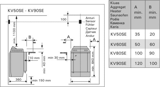 Moc: 6,0kW do sauny 5-8 m3, 8,0 kW do sauny 7-12 m3 ; 9,0kW do sauny 8-14m3