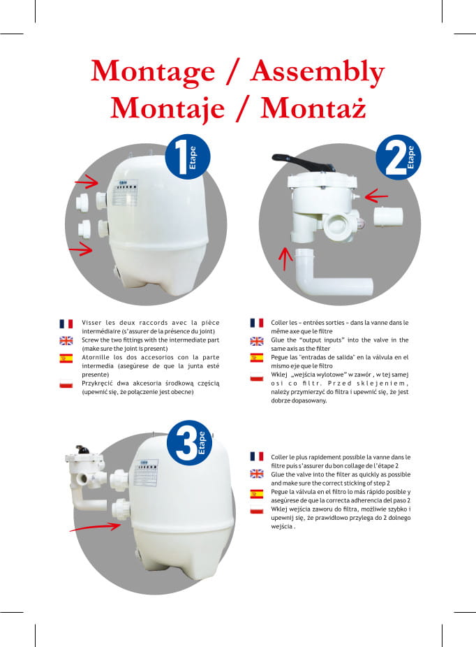 Filtry piaskowe pobierają wodę z basenu dzięki pompie. Oczyszczają ją i z powrotem wtłaczają ją do basenu. Wszelkie zanieczyszczenia pozostają na ziarnach piasku lub szkłach AMF. Gdy wkład filtracyjny się zabrudzi, wymagane jest oczyszczenie zbiornika. Moment czyszczenia sygnalizuje nam manometr, który znajduje się na wyposażeniu każdego filtra. Płukać filtr należy co kilkanaście dni. Należy wiedzieć, że wkład filtrów piaskowych należy wymieniać co dwa lata, a wkłady AMF co 4-5 lat, aby zapobiegać rozwojowi bakterii i grzybów. Nie dopilnowanie tego wywoła mętnienie wody w basenie.