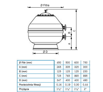 | Typ filtracji: | Filtracja piaskowa (piasek kwarcowy lub złoże filtracyjne) |