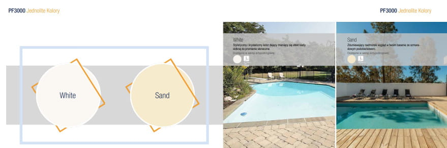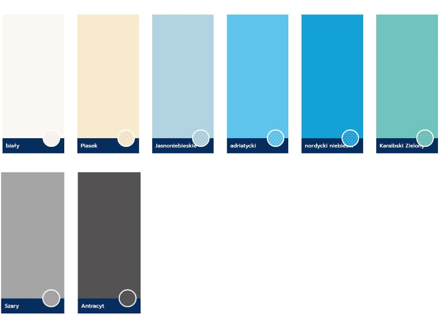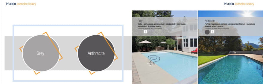 Folia do basenu seria PF4000 to kolekcja wyjątkowych drukowanych wzorów wyściełających basen, inspirowana najnowszymi trendami i stylami dekorów. Natomiast folia basenowa z serii PF3000 oferuje piękną gamę gładkich kolorów. Grubość folii 1,5 mm.