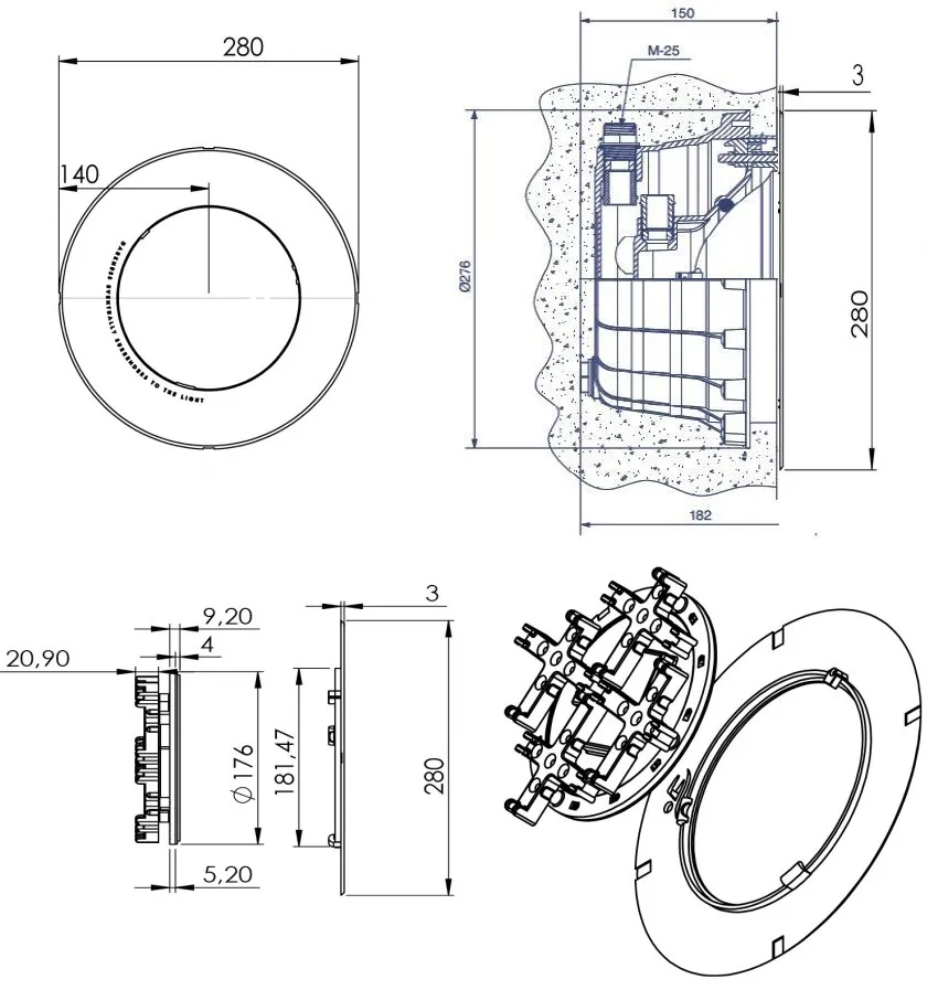 Lampa Joker LED dostarczana jest z puszką euro, jednak dzięki specjalnym regulowanym uchwytom może być montowana również w puszkach i obudowach innych producentów. Całkowita grubość lampy wraz z żarówką i ramką wynosi 3 mm, co zapewnia estetyczny i dyskretny montaż w ścianie basenu.