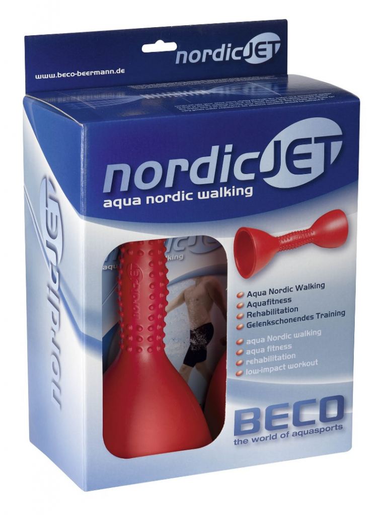 Para Aqua Jetów wykonanych z rewelacyjnej pianki EVA, bardzo miłej w dotyku, estetycznej, lekkiej i bardzo trwałej. Dwa kielichy – mniejszy i większy, połączone rękojeścią przez którą przepływa woda. Przepływająca woda stabilizuje ruchy ramion użytkownika i pozwala poruszać się równo na przód w wodzie.