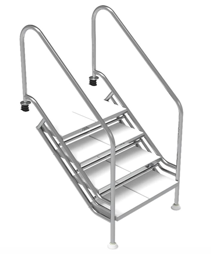 Profesjonalne schody basenowe wykonane z materiałów najwyższej jakości. Konstrukcja schodów stal AISI 316 , stopnie antypoślizgowe tworzywo ABS odporne na uszkodzenia. Schody doskonale zdają egzamin w pensjonatach, hotelach oraz sanatoriach dla osób starszych.
