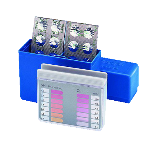 Tabletki DPD 1 służą do pomiaru chloru wolnego, DPD 3 do pomiaru chloru całkowitego. Mając te dwa pomiary jesteśmy w stanie obliczyć stężenie chloru związanego – wystarczy od chloru całkowitego odjąć wartość chloru wolnego. Odczyn zbadamy za pomocą preparatu o nazwie Phenol Red, a tlen aktywny – DPD 4. Parametry chloru powinny mieścić się w granicach 0,3 – 0,6 mg/L, wartości tlenu aktywnego 3 – 8 mg/L, a skala pH musi być utrzymywana w przedziale 7,0 – 7,4 pH. W naszym sklepie tabletki oferowane są w ilościach 1 listka, 10 lub 50 listków (10, 100 lub 500 tabletek), renomowanych firm Lovibond lub Palintest.