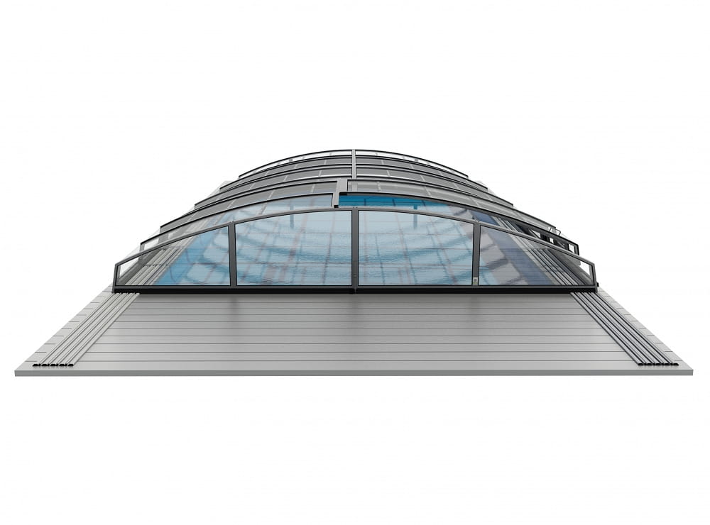 Lekka, aluminiowa budowa w połączeniu z trwałym wypełnieniem z poliwęglanu zapewnia skuteczną ochronę basenu przed zanieczyszczeniami, ogranicza straty ciepła i pozwala znacząco wydłużyć sezon kąpielowy.